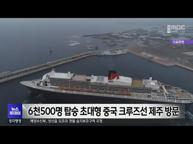 최대 6천500명까지 탑승할 수 있는초대형 중국 크루즈선이 제주를 찾습니다. 제주도에 따르면 중국이 처음으로 자체 건조한 13만 톤급 초대형 크루즈선 ‘아도라 매직시티호’가 오는 28일 첫 기항지로 서귀포시 강정 민군복합형관광미항에 입항합니다.이 배는 24층 건물 높이에 객실 2천여 개를 갖추고 최대 6천500명까지 탑...