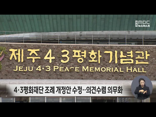 최근 논란이 일었던 4.3평화재단 조례 개정안이 수정됐습니다.제주도는 조례규칙심의위원회를 열고 입법예고 기간에 접수된 의견을 토대로 이사장을 도지사가 임명하지만 사전에 재단 이사진의 의견 수렴을 의무화하기로 수정했습니다.또 재단 이사를 도지사가 임명하지 않고 재단 이사장이 임명하는 것으로 보완했습니다....
