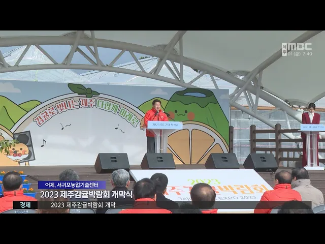 2023 제주감귤박람회가 서귀포농업기술센터에서 개막해 다음달 4일까지 열립니다. 개막식에 참석한 오영훈 지사는 모든 감귤의 당도를 측정하고 선별해 소비자가 신뢰할 수 있는 여건을 만들었다며 전 세계의 사랑을 받는 제주감귤의 시대를 만들자고 강조했습니다.이번 감귤박람회에서는 감귤따기 체험과 감귤 할인 판매, ...