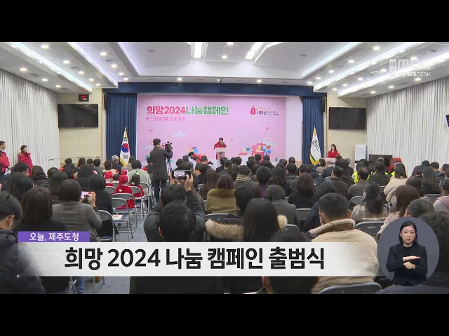 제주사회복지공동모금회는 제주도청에서 희망 2024 나눔 캠페인 출범식과 사랑의 온도탑 제막식을 열고 어려운 이웃을 돕기 위한 모금을 시작했습니다.이번 캠페인은 다음달 말까지 62일동안 진행되는데 모금 목표액은 늘어난 복지 수요를 반영해 역대 최고인 43억 2천만 원으로 정했습니다.오늘 출범식에서는 첫 번째 개인...