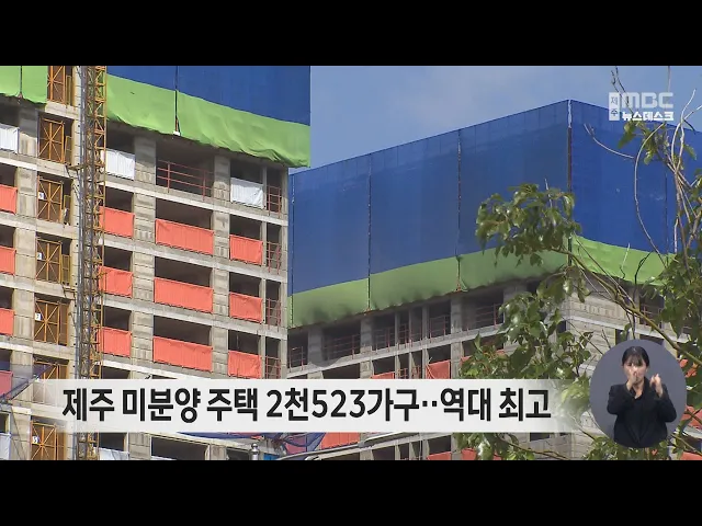제주지역 미분양 주택이 사상 최고치를 기록하는 등 주택시장이 침체가 가중되고있습니다.국토교통부가 발표한 지난달 주택 통계에 따르면 제주의 미분양 주택은 2천523가구로 역대 최고를 기록했습니다.특히 악성 미분양으로 분류되는 준공 후 미분양 주택도 사상 처음 천 가구를 돌파했습니다.미분양 주택이 늘면서 신규 ...