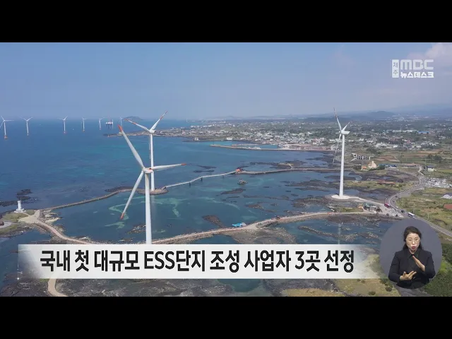국내 처음으로 제주에 대규모 에너지저장장치 단지가 들어섭니다.산업통상자원부는 제주지역 출력제한 해결을 위해 조천읍 북촌리와 한림읍 동명리,안덕면 화순리에 총 65메가와트 규모의대형 에너지 저장장치를 건설합니다. 정부는 2026년까지 제주에 총 160메가와트 규모의 에너지 저장장치를 설치할 계획입니다.