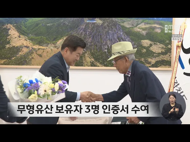 제주도가 무형유산인 구덕장 보유자 오영희씨를 비롯해 정동벌립장 보유자인 송월순, 홍양숙씨 등 3명에게 인증서를 수여했습니다. 구덕장은 대나무로 바구니를 만드는 기술이며, 정동벌립장은 정동이라는 식물 줄기로 모자를 만드는 기술인데, 제주의 교유한 생활상을 반영해 모두 무형유산으로 지정됐습니다.
