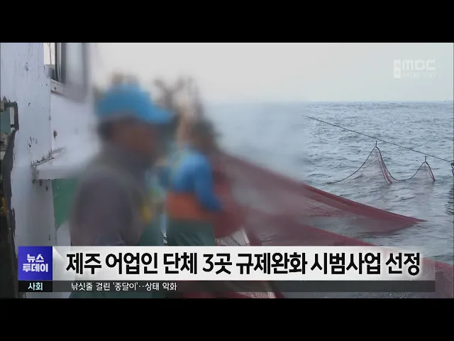 해양수산부의 어업 규제 완화 시범사업에제주 어업인 단체 3곳이 선정됐습니다.시범사업은 어선주협의회의 근해연승 검사지침 완화와 근해채낚기협의회의 바람막이 규제 완화, 성산포어선주협회의 근해채낚기 이중 갑판 규제완화입니다.제주도와 어업인단체들은 2015년부터 불합리한 규제를 완화해달라고 건의해왔는데 시범...