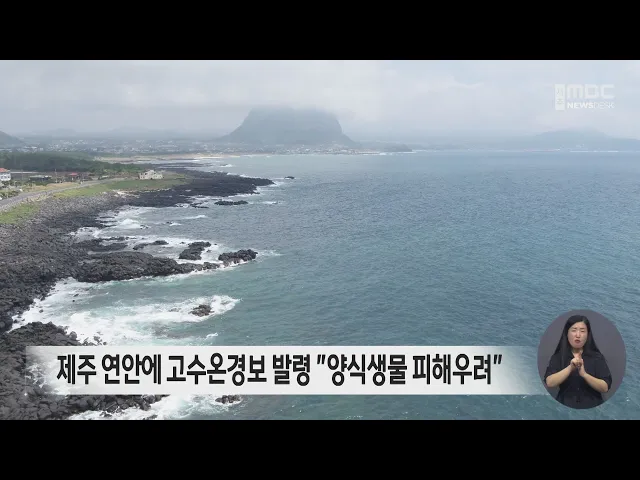 해양수산부 국립수산과학원이 제주 연안에 고수온경보를 발령했습니다. 고수온경보는 28도 이상의 수온이 3일 이상 지속될 때 내려지는데 우도는 29.7도, 협재는 28.5도까지 올랐습니다. . 수산과학원은 장기간 지속되는 고수온과 태풍의 통과로 양식생물의 면역력이 떨어지면서 추가 피해가 우려된다며 철저한 관리를 당...