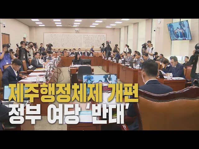 ◀ANC▶ 오영훈 제주도지사가 핵심공약으로 추진해온 제주형 행정체제 도입이 국회에서 제동이 걸렸습니다. 시.군 부활을 주민투표로 결정하는 제주 특별법 개정안에 대해 정부와 여당이 반대하고 나섰습니다. 조인호 기자입니다. ◀END▶ ◀VCR▶ 지난 5월 국회 행정안전위원회를 통과한 제주 특별법 개정안이 법률 체...