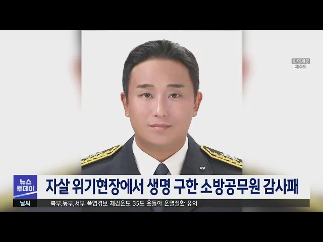 자살 위기현장에서 생명을 구한 구좌119센터 이은상 소방사가 제주도광역정신건강복지센터로부터 감사패를 받았습니다. 올해 임용된 새내기 소방공무원인 이은상 소방사는 지난 6월 자살기도 신고를 받고 출동한 뒤 환자를 설득해 극단적 선택을 막고 의료기관에서 치료를 받도록 했습니다.