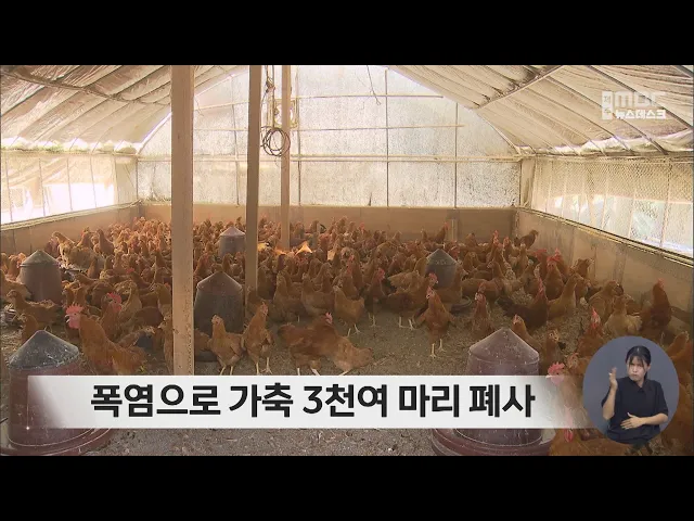 폭염으로 가축 폐사 피해가 잇따르고 있습니다. 제주도에 따르면 지난달부터 지난 1일까지 가축재해보험 가입 농가에서 신고한 폭염에 따른 가축 폐사는 열 일곱 농가에 3천80마리입니다. 이 가운데 닭은 한 농가에서 2천 500마리가 폐사했고 돼지는 열 여섯 농가에서 580마리가 죽었습니다.