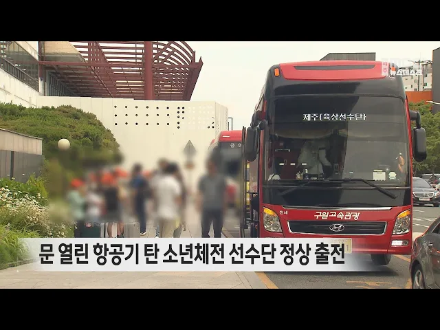 어제 제주에서 대구로 가던 중 문이 열린 항공기에 탔던 전국소년체전 제주 선수단이 정상적으로 대회에 참가하기로 했습니다. 제주도 체육회에 따르면 육상과 유도 선수단 9명이 어지럽다고 호소해 병원으로 후송됐지만 별다른 이상은 없어 오늘부터 울산에서 열리는 대회에 출전하기로 했습니다. 한편, 항공기 문을 연 3...