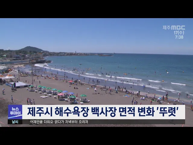 제주시 지역 해수욕장의 백사장 면적이 지역에 따라 크게 줄거나 늘어난 것으로 나타났습니다. 제주시가 지난해말 해수욕장 8군데의 환경을 조사한 결과 삼양해수욕장 백사장 면적은 2018년보다 31%, 곽지해수욕장은 12% 줄었습니다. 반면, 월정해수욕장 백사장 면적은 2018년보다 26%, 이호해수욕장은 11% 늘었습니다.
