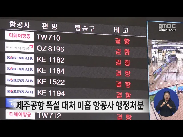 제주공항 폭설 대처 미흡 항공사 행정처분