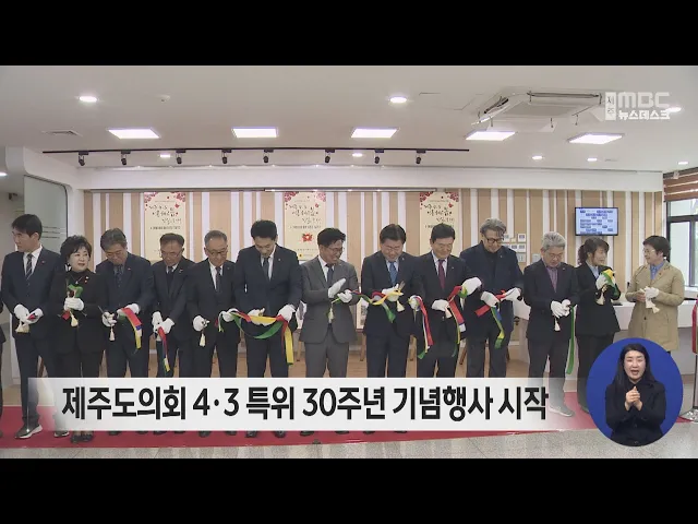 제주도의회 4.3 특별위원회 출범 30주년을 맞아 기념주간 행사가 시작됐습니다. 4.3 특별위원회는 '서른 해의 봄, 4.3 특별위원회'의 기억을 주제로 한 사진전 개막식을 갖고 다음달 3일까지 도의회에서 4.3 특위 활동사진을 전시합니다. 또, 이달 말까지 역대 4.3 특별위원장 좌담회와 이공삼공 집담회, 4.3 유족 초청 영...