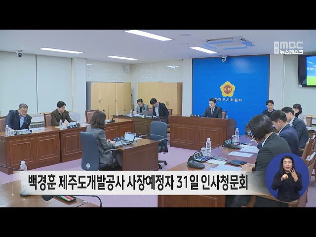 백경훈 제주도개발공사 사장 예정자에 대한 인사청문회가 오는 31일 열립니다. 제주도의회 환경도시위원회는 백경훈 제주도개발공사 예정자에 대한 인사청문회 실시계획서를 채택하고 재산과 병역, 경영계획 등 60여 가지 항목에 대한 자료를 오는 22일까지 제출해달라고 제주도에 요청했습니다. 청문회가 끝나면 도의회는...