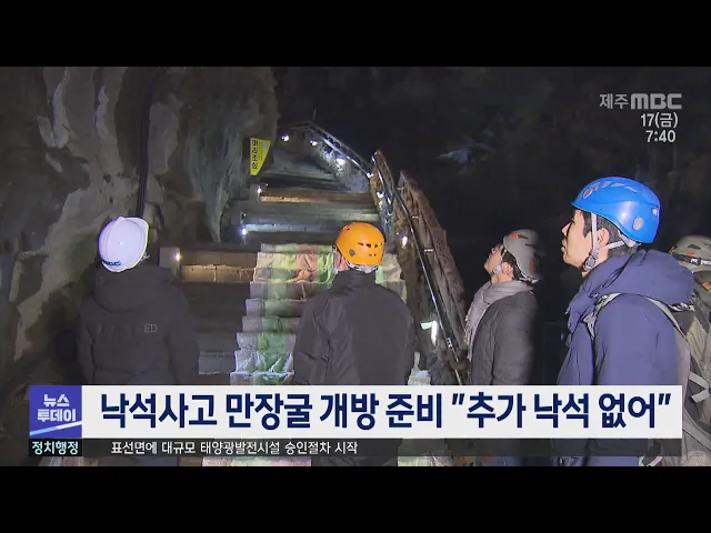 제주도가 지난 1월 낙석이 발생해 폐쇄된 만장굴에서 해빙기 점검을 실시하고 위험요인을 제거하는 등 개방 준비에 들어갔습니다. 제주도는 카메라 4대를 설치해 24시간 영상 모니터링한 결과 낙석 등 특이사항이 나타나지 않았고 전문가와 함께 동굴 천정을 점검해 흔들림이 있는 바위 조각은 제거했습니다. 제주도는 전...
