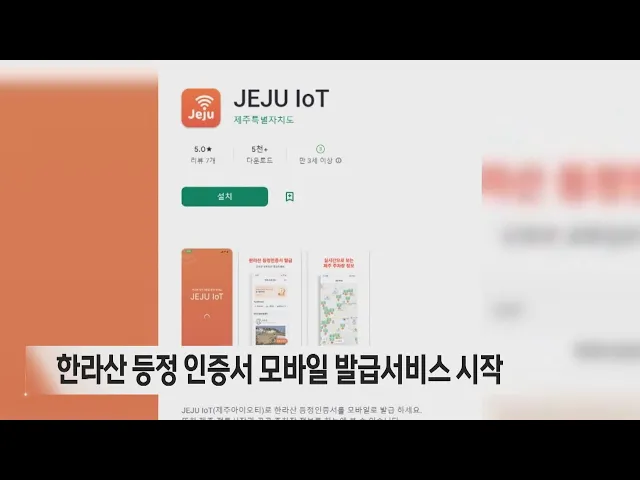 한라산 등정 인증서 모바일 발급 서비스가 내일부터 시작됩니다. 이에 따라, 지금까지 한라산 탐방로 입구의 무인발급기에서 수수료를 내고 출력해오던 한라산 등정 인증서를 스마트폰의 제주 아이오티 앱을 통해 무료로 발급받을 수 있게 됐습니다. 제주 아이오티 앱을 통해서는 한라산 CCTV와 날씨 , 탐방안내 정보도 제...