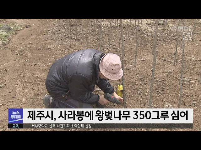 제주시는 오는 14일 사라봉공원에서 열리는 식목일 기념 나무심기행사에서 제주 자생 왕벚나무 340그루를 심기로 했습니다. 이번에 심는 나무는 그동안 한라생태숲에서 키워온 것들인데 제주시는 이번 행사를 통해 제주가 왕벚나무 자생지임을 알리고 기후 위기를 극복하기 위한 600만 그루 나무심기에 시민 동참을 호소할...