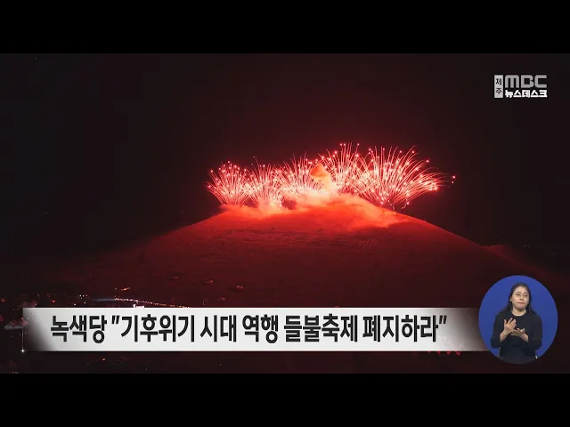 제주녹색당은 논평을 통해 기후위기 시대에 역행하는 들불축제를 폐지하라고 요구했습니다. 이들은 들불축제의 경우 석유를 쏟아붓거나 화약을 터뜨려 오름에 불을 지르는 등 환경문제가 심각한데도 생태계에 어떤 영향을 끼치는지 한 차례도 조사가 이뤄지지 않았다며 기후재난 앞에 탄소배출을 늘리는 퇴행적 축제는 과...