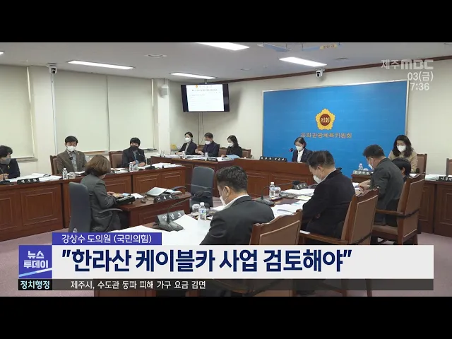 국민의힘 강상수 도의원은 제주도의회 문화관광체육위원회에서 설악산 케이블카가 최근 승인된 만큼 한라산 케이블카에 대해 검토해야 할 때가 됐다고 주장했습니다. 이에 대해, 변덕승 제주도 관광교류국장은 관광객 전체 수에 큰 영향을 준다고 보기는 어렵지만 케이블카로 발생하는 수익이 있기 때문에 도움이 될 수 있...