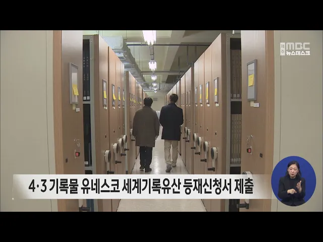 제주도와 4.3 평화재단이 4.3 기록물의 유네스코 세계기록유산 등재 신청서를 문화재청에 제출했습니다. 등재 대상은 수형인 명부와 재판기록, 미군정 보고문서와 희생자와 유족 증언, 4.3 피해신고서와 화해 상생기록 등 3만 303건입니다. 세계기록유산은 국가마다 2건 이내로 신청할 수 있는데, 문화재청은 오는 4월말 ...
