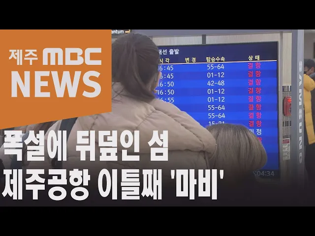 폭설에 뒤덮인 섬...제주공항 이틀째 마비