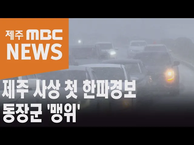 ◀ANC▶ 북극발 한파가 우리나라로 남하하면서 제주에도 강추위가 시작됐습니다. 제주 산지에는 사상 처음으로 한파경보가 내려졌고 내일부터는 해안지역에도 많은 눈이 내리겠습니다. 조인호 기자입니다. ◀END▶ ◀VCR▶ 새하얀 솜뭉치 같은 눈이 하늘에서 쉴 새 없이 쏟아집니다. 한라산 중턱의 광장은 동화 속 겨울...