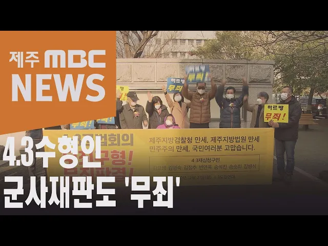 ◀ANC▶ 제주 4.3 사건 당시군사재판을 받은 수형인들에게도재심에서 처음으로 무죄가 선고됐습니다. 법원이 지난해에는 군사재판의 절차에 문제가 있다는공소 기각 판결을 내렸지만이번에는 죄가 없다는 무죄 판결을 내린 것입니다. 조인호 기자입니다. ◀END▶ ◀VCR▶ 지팡이를 짚고 휠체어를 타고법원에 찾아온 노...