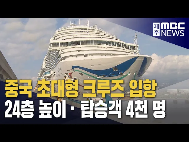 ◀ 앵 커 ▶중국에서 자체 제작한24층 높이의 초대형 크루즈가 제주에 처음 입항했습니다. 탑승객만 4천 명에 달하는데, 중국 크루즈 관광객이 본격적으로 제주를 찾을 것으로 예상되면서 관광시장 활성화도 기대되고 있습니다. 박주연 기자가 보도합니다.◀ 리포트 ▶ 대형 호텔만 한 큼직한 선박이강정항으로 들어왔습니다. ...