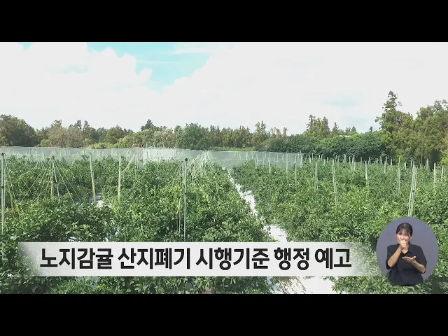 노지감귤 산지폐기 시행기준이 마련됐습니다. 제주도는 기온이 영하3도 이하로 6시간 이상 지속돼 동해 피해가 발생하거나 집중호우로 병충해 등이 발생한 경우 등에 해당되면 생산자 단체가 도지사에게 산지폐기를 요청할 수 있는 내용의 시행기준을 행정예고했습니다. 이번 시행기준은 농어업인 단체 토론회 등을 거쳐 ...