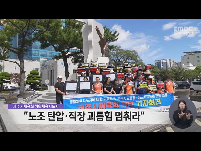 제주시 체육회 소속 생활체육지도자들은 오늘(29일) 제주시청 앞에서 기자회견을 열고 노조원들을 대상으로 한 직장 갑질과 괴롭힘을 멈추라고 촉구했습니다. 이들은 제주시체육회 이병철 회장이 노조위원장에게 폭언을 퍼붓고 일부 조합원의 노조 가입을 방해했다고 밝혔습니다. 또, 노조에 가입한 지도자들의 수업을 없...