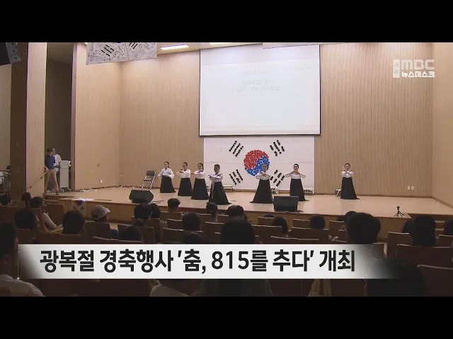 광복절 경축행사 '춤, 815를 추다'가 오늘 제주혼디누림터에서 열렸습니다. 제주도가 후원하는 이번 행사에서는 독립투사들과 함께 이름없이 스러져갔던 학도병과 학생 등에 대한 긍지를 느끼기 위해 대규모 애국가와 독립군가 퍼포먼스를 포함한 역사 문화 콘서트의 형식으로 진행됐습니다. 또, 시 낭송과 랩, 밴드 공연 ...