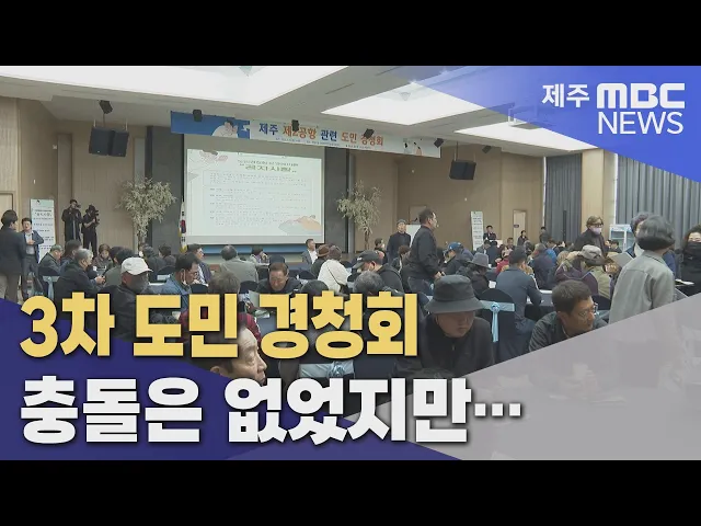 ◀ANC▶ 제주 제2공항에 대한 도민들의 의견을 듣기 위한 세번째 도민 경청회가 한림에서 열렸습니다. 인권지킴이가 처음 배석된 가운데 물리적 충돌이나 인신공격성 발언은 없었지만 찬반 의견은 팽팽하게 갈렸습니다. 박주연 기자가 보도합니다. ◀END▶ ◀VCR▶ 공항 예정 지역인 성산읍과 서귀포시에 이어 한림에서...