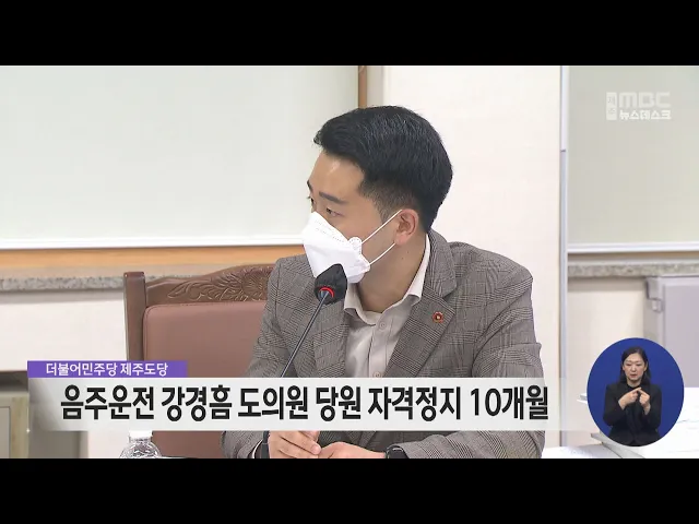 더불어민주당이 음주운전 혐의로 입건된 강경흠 제주도의원에게 당원 자격정지 10개월 징계 처분을 내렸습니다. 더불어민주당 제주도당은 오늘 도당 회의실에서 제1차 윤리심판원 징계 심사를 진행해 강의원에 대한 징계를 의결했습니다 또, 앞으로 당내 선출직공직자가 음주운전으로 인해 징계 청원되면 무조건 제명하기...
