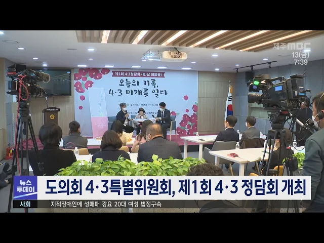 제주도의회 4.3 특별위원회는 제1회 4.3 정담회를 열고, 4.3 그림에세이 '인동꽃아이'의 저자인 강양자 씨를 초청해 4.3을 겪은 아픔 등에 대해 이이기를 나눴습니다. 4.3특별법 제정과 공포 23주년을 기념해 열린 이번 행사에서는 '22년의 기록, 23년의 설계'라는 주제로 토론도 진행됐습니다.
