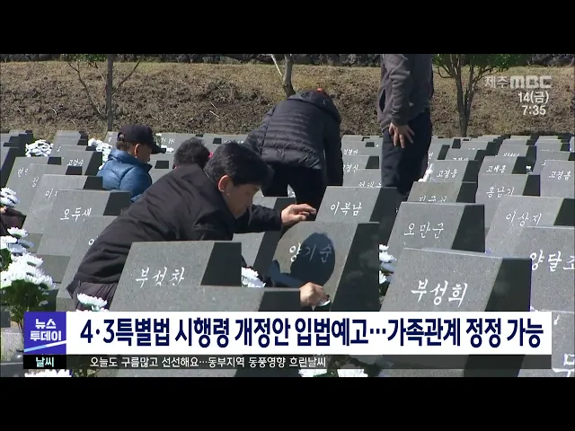 제주4.3 당시 뒤틀렸던 가족관계를 정정할 수 있는 법적 근거가 마련됐습니다. 정부는 가족관계등록부 정정 대상의 확대와 이의신청 절차 신설 등을 담은 제주4.3사건 진상규명과 희생자 명예회복에 관한 특별법 시행령 개정안을 입법 예고했습니다. 이에 따라 앞으로 4.3 위원회에서 친생자 관계 확인과 같은 사항에 대한...