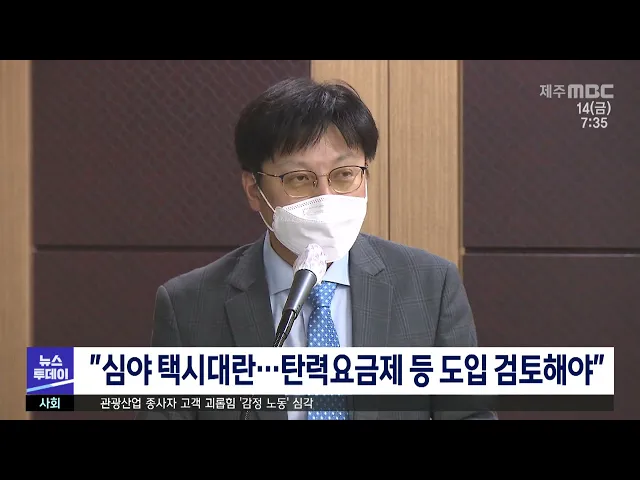 심야 택시 승차대란을 해소하기 위해 탄력요금제 도입이 필요하다는 의견이 제시됐습니다. 제주도의회에서 열린 택시대란 해결방안 토론회에서 손상훈 제주연구원 연구위원은 이같이 밝히고, 심야 시간 전용 택시를 도입하거나 법인택시 운행 시간을 야간으로 유도하는 방안도 검토할 필요가 있다고 제안했습니다.