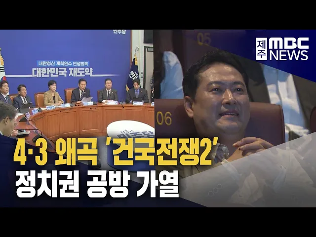 국민의힘 장동혁 대표가 제주4.3 왜곡 논란의 영화를 관람하고 홍보한 것과 관련해 제주4.3범국민위원회와 제주4.3기념사업위원회는 오늘 성명을 내고 4.3을 왜곡하고 폄훼하는 행위에 대한 단죄가 필요하다며 강력히 규탄했습니다. 장 대표가 감독과의 대화 자리에서 이 영화에 대해 감사를 표한 것은 3만 4.3희생자를 ...