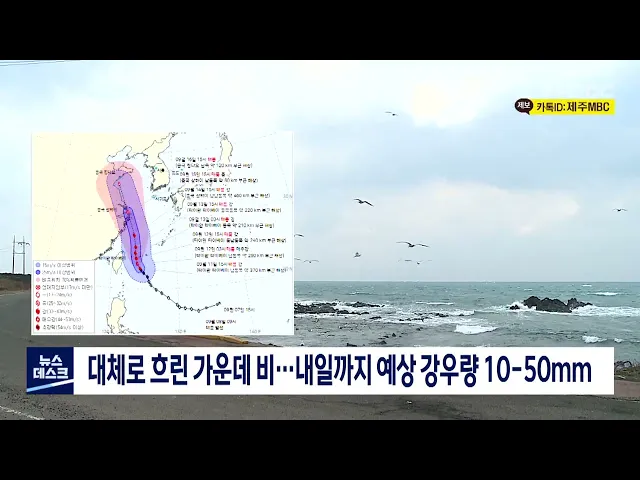 추석 명절 연휴 셋째날인 오늘 제주지방은 서쪽에서 다가오는 기압골의 영향으로 대체로 흐린 가운데, 곳곳따라 비가 내렸다 그쳤습니다. 오늘 하루 한라산 성판악에 25mm를 최고로 선흘 10, 성산 5.7mm의 비가 내렸습니다. 비는 오늘 밤부터 다시 시작해 내일까지 천둥.번개와 함께 제주도 전역에 10에서 50mm 더 내리겠...