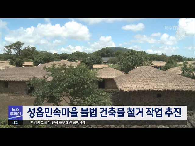 서귀포시 표선면 성읍민속마을을 문화재 지정 당시의 모습으로 복원하기 위한 불법 건축물 철거 작업이 추진됩니다. 제주도는 문화재청과 함께 오는 2천26년까지 건축물 870동을 대상으로 불법 행위가 발견된 건축물은 철거하고, 불법적으로 용도변경된 건물은 복구하겠다고 밝혔습니다. 성읍민속마을은 지난 1984년 6월 ...
