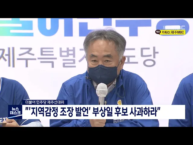 더불어민주당 제주도당 선거대책위원회는 오늘 오후 전체 회의를 열고 제주시 을 보권선거에 출마한 국민의힘 부상일 후보의 '제주도의 전라도화' 발언에 대해 강력 규탄했습니다. 송재호 총괄상임선대위원장은 부상일 후보가 지역 감정 조장 발언을 하고 있다며 민주당으로서 강력히 경고한다고 밝혔고, 위성곤 상임선대위...