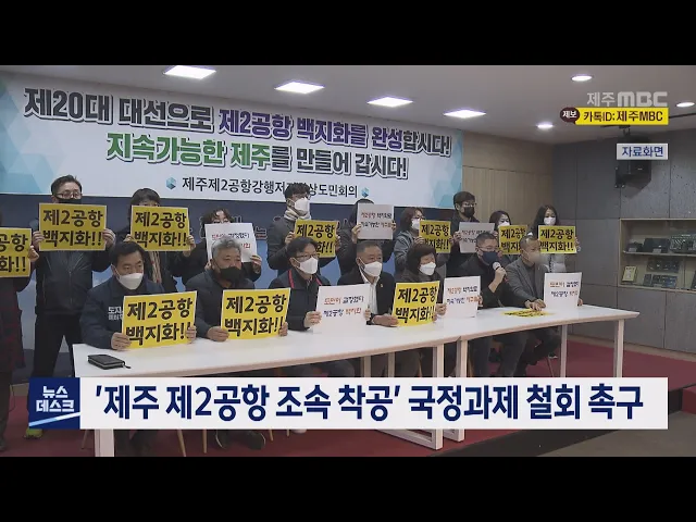 제주 제2공항 강행저지 비상도민회의는 논평을 내고, 윤석열 대통령의 국정과제에 제주도 핵심공약으로 포함된 '제2공항 조속 착공'을 철회하라고 요구했습니다. 이들은 제2공항과 배후복합도시 건설, 신항만 혁신물류단지 개발 등이 진행된다면 제주 사회 갈등과 분열, 반목은 돌이킬 수 없을 것이라고 주장했습니다.