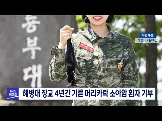 해병대 제 9여단 소속 이다희 대위가 소아암 환자를 위해 4년간 길러온 머리카락 35센티미터를 기부했습니다. 이 대위는 힘겹게 병마와 싸우고 있을 소아암 환자들에게 희망을 전하고 싶다고 밝혔는데 기부한 머리카락은 항암치료로 탈모가 심한 어린이를 위한 가발을 만드는데 쓰이게 됩니다.