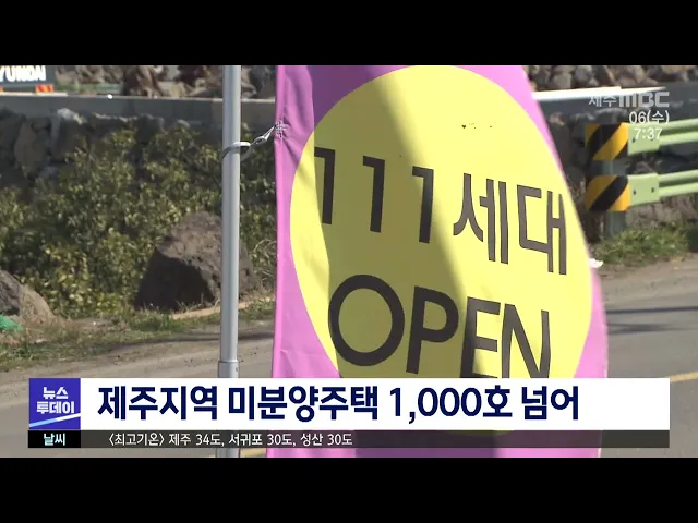 제주지역 미분양주택이 천 호를 넘어섰습니다. 국토교통부에 따르면 지난 5월 기준 제주 미분양주택은 천 119호로 전달보다 157호, 16.3% 증가하면서 지난해 5월 이후 1년만에 천 호를 넘었습니다. 준공후 미분양은 709호로 전달보다 30호, 4.1% 감소했습니다.