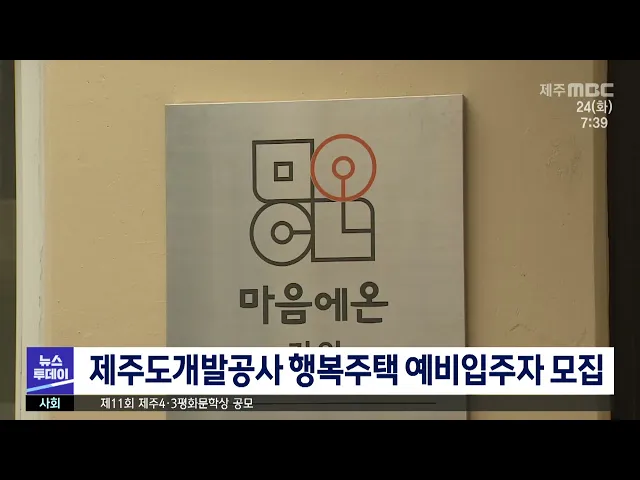 제주도개발공사는 제주시 아라동과 삼도1동, 건입동 등'마음에온 행복주택' 5개 단지 167세대에 대한 예비 입주자를 모집합니다. 대상은 대학생과 청년, 고령자와 신혼부부 등이며, 다음 달 7일부터 나흘 동안 등기 우편과 메일로 온라인 접수 신청이 진행되고, 현장접수는 온라인 접수가 끝난 뒤인 다음 달 7일부터 이틀 ...