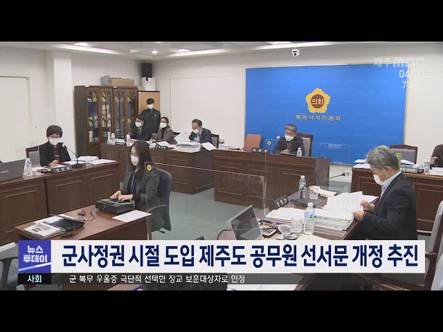더불어민주당 이상봉 제주도 의원은 군사정권 시절 도입된 공무원 선서문을 개정하는 조례 개정안을 발의했습니다. 지난 1981년 도입된 제주도 공무원 선서문은 신명을 바친다는 다짐이나 상사의 직무상 명령에 복종한다는 내용 등이 포함돼 있어 권위주의적이고 시대에 뒤떨어진다는 지적이 잇따랐습니다.