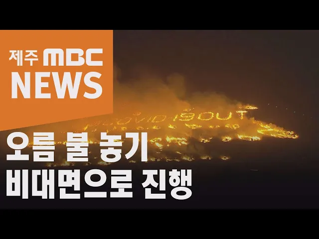 ◀ANC▶ 코로나19 여파로제주의 대표적인 축제인 들불축제가 비대면 방식으로 열리고 있는데요. 축제 모습이 인터넷을 통해 생중계되고 있는 가운데,조금 전 축제의 하이라이트인오름 불 놓기 행사가 열렸습니다. 현장에 나가있는김항섭 기자 연결해 보겠습니다. 김항섭 기자, 지금 현장 분위기는 어떤가요? ◀END▶ ◀V...