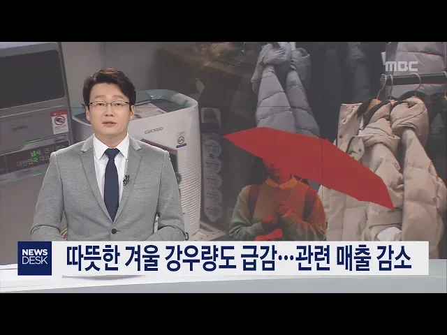 ◀ANC▶ 올 겨울 눈다운 눈이 내리지 않으면서 예년에 비해 강우량이 크게 줄었는데요. 기온도 상대적으로 높아 관련 업계 상품의 매출도 감소했습니다. 김항섭 기자입니다. ◀END▶ ◀VCR▶ 대형마트의 난방용품 코너입니다. 진열대에 난방용품들이 그대로 쌓여 있습니다. 최근 포근한 날씨가 이어지면서 판매가 25%나 ...