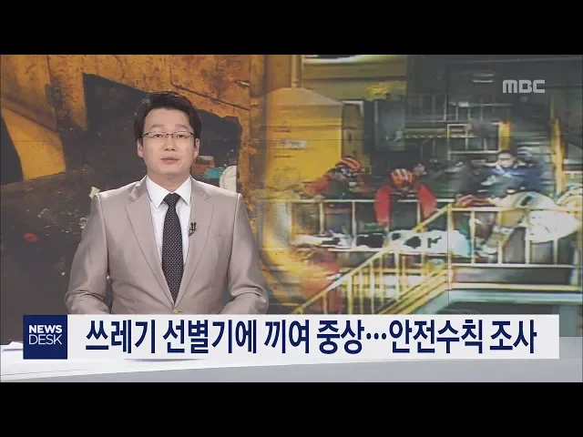 ◀ANC▶ 쓰레기매립장에서 40대 여직원이 재활용품 분류 기계에 끼여 크게 다치는 사고가 발생했습니다. 청소를 하던 중 기계가 작동해 변을 당한 것으로 알려졌습니다. 김항섭 기자가 보도합니다. ◀END▶ ◀VCR▶ 한 여성이 분주하게 청소준비를 합니다. 잠시 후 재활용품을 분류하는 컨베이어 벨트가 작동하기 시작...