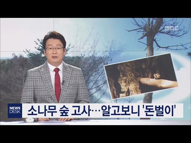 (리포트) 대규모 산림훼손...목적은 투기 ◀ANC▶ 부동산 개발을 쉽게 하기 위해 멀쩡한 소나무 숲을 훼손한 영농조합법인 대표가 적발됐습니다. 이 토지를 쪼개, 되팔아 수십억 원의 시세차익을 챙겼습니다. 김항섭 기자가 보도합니다. ◀END▶ ◀VCR▶ 짙푸른 소나무 숲이 펼쳐진 한 임야. 소나무 숲 사이로 잎이 모두 누렇게 말라버린 나무들이 눈에 띕니다. ... 김항섭 2018년 10월 01일