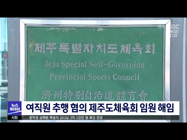 여직원을 추행한 혐의로 기소된 제주도체육회 사무처 임원에 대해 해임 결정이 내려졌습니다. 제주도체육회는 최근 인사위원회를 열고 강제 추행 혐의를 받고 있는 체육회 사무처 61살 임원에 대해 해임 결정을 내렸습니다. 해당 임원은 지난 5월, 전국소년체전이 열리는 대구에서 여직원을 추행한 혐의로 재판에 넘겨졌습...