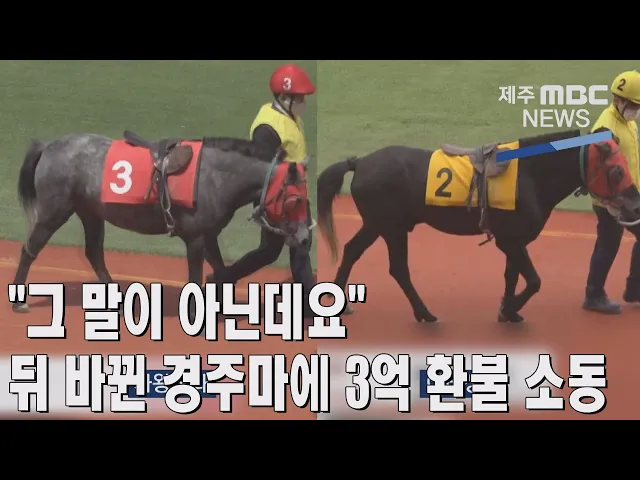 ◀ANC▶ 제주경마장에서 경주에서 출전하기로 한 말 대신 다른 말이 경기에 나오는 황당한 사고가 발생했는데요. 경주마 색깔도 다르고, 내장 칩을 통해 확인하는 절차까지 거쳤는데도 마사회는 경기가 끝날 때까지 몰랐습니다. 어떻게 된 일인지 김찬년 기자가 취재했습니다. ◀END▶ ◀VCR▶ 지난 10일 오전 제주경마...